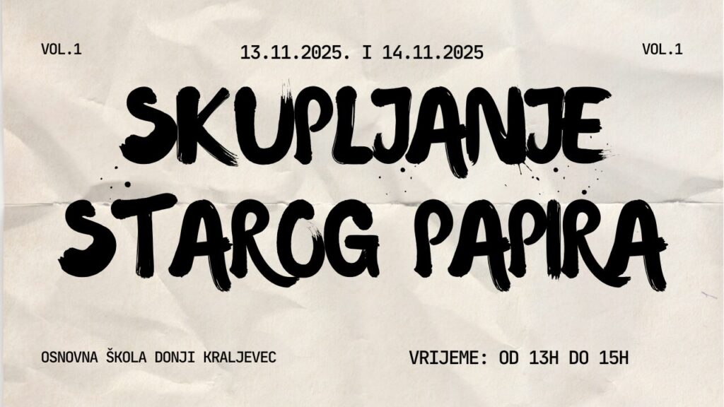 U našoj školi će se u četvrtak 13.11. i petak 14.11. održati akcija skupljanja starog papira.