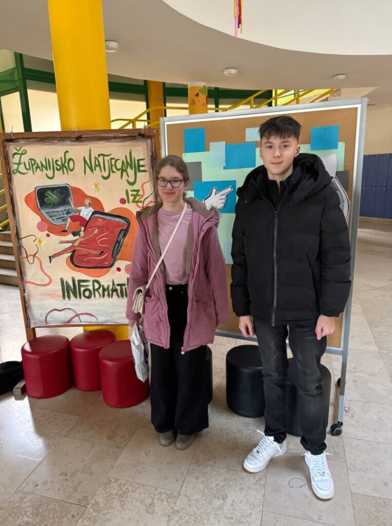 Učenici naše škole Samanta Horvat i Leon Križaj ostvarili su plasman na Županijsko natjecanje iz informatike. Natjecanje je održano 13.  veljače 2026. u OŠ Prelog te je okupilo najbolje informatičare iz cijele županije. Natjecanje je obuhvatilo više kategorija, Samanta se natjecala u kategoriji Digitalne kompetencije, a Leon u Osnovama informatike.